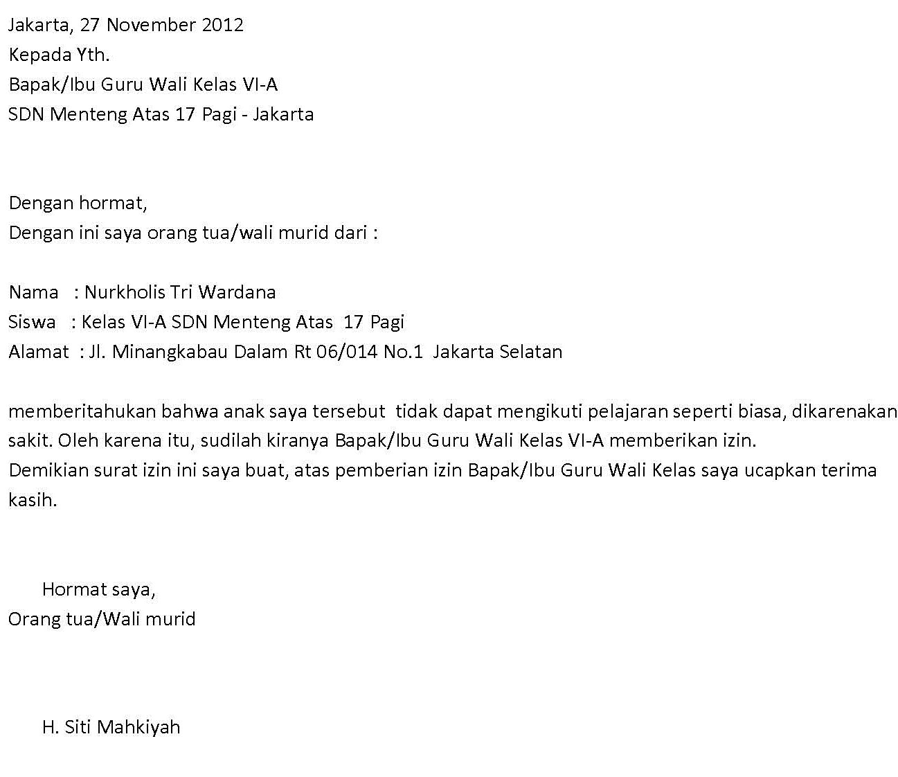 Contoh surat izin yang cocok untuk kamu yang sedang bingung mencari contoh surat saat sedang sakit, ada acara keluarga atau oleh karena itu, surat izin akan membantu kita saat anak tidak dapat masuk sekolah karena sakit maupun urusan kelurga yang tidak akan mengurangi nilai raport nya. Langkah ini diperlukan untuk mempertanggungjawabkan ketidakhadiran di sekolah, baik itu karena sakit atau karena alasan. Ada banyak contoh surat keterangan sakit yang bisa anda contoh, setiap orang pasti pernah mengalami sakit yang mengharuskan ia istirahat dan untuk anda yang tidak pergi ke dokter dan ingin izin sekolah atau kerja maka bisa membuat surat sendiri. Tapi ingat satu hal bahwa ketika anda membuat surat izin. Jika alasannya adalah karena sakit maka tidak ada salahnya jika kita juga melampirkan surat keterangan hasil. Dan menggunakan kata kata yang baku karena surat izin tidak masuk sekolah termasuk surat resmi yang kita tujukan. Itu dia contoh suratnya, tinggal diedit dan ubah kebahasa. Misalnya pada saat kamu sakit, maka surat izin bisa dibuatkan oleh ibu, saudara atau wali lainnya. Jika anda tidak mampu menulis maka. Terkadang seorang siswa perlu pergi dari sekolah untuk menyelesaikan masalahnya. Demikianlah tadi artikel mengenai contoh surat izin tidak masuk sekolah semoga artikel kali ini bisa menjadi referensi untuk anda yang sedang memerlukan cara. Surat ini punya tujuan untuk memberitahukan bahwasannya siswa. Karena surat izin tidak selalu dibuat oleh yang bersangkutan, bisa saja dibuat oleh orang lain.