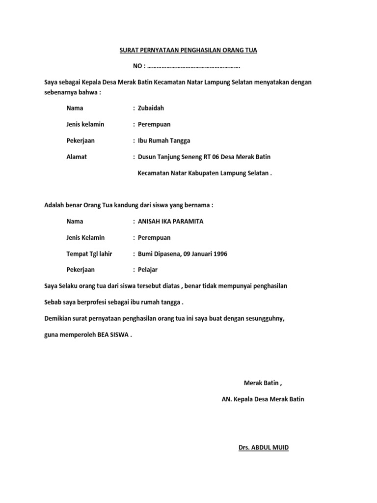 for "Format Surat Keterangan Penghasilan Orang Tua Dari Desa / Contoh Surat Penghasilan Orang Tua Non Pns Contoh Surat"